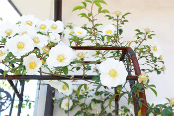 GWが近づくと、我が家のナニワイバラが満開になります。